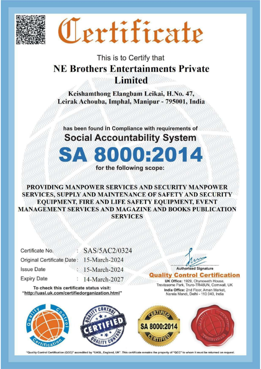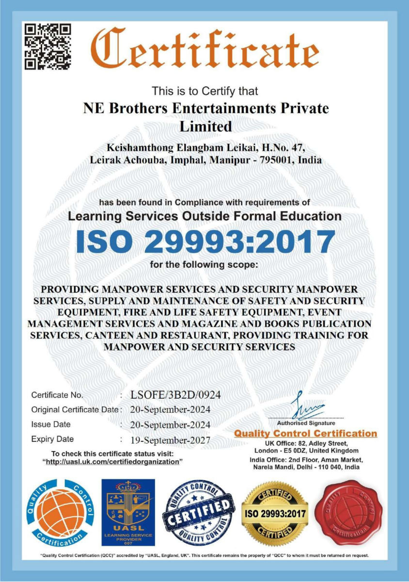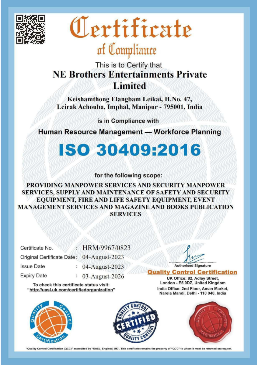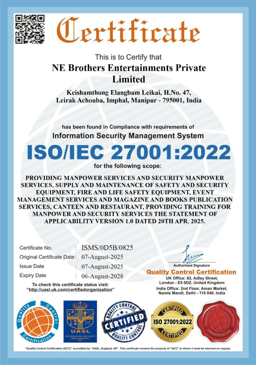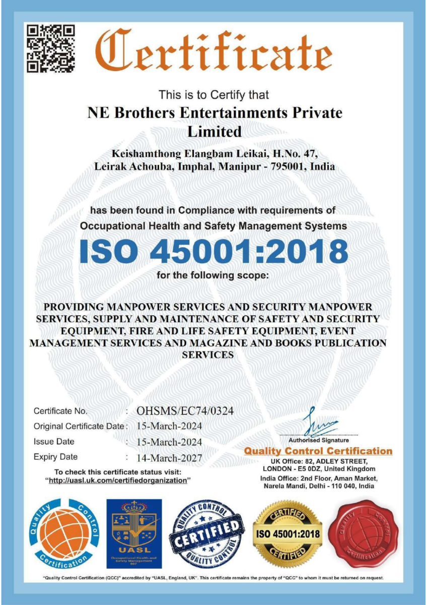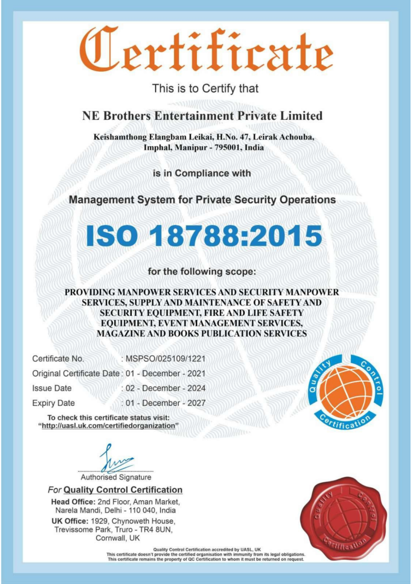We have earned the Accreditation Certificate for security training under National Skill Development Corporation. Under the Manipur Institute of Security & Intelligence Management, we bring out highly trained, committed, reliable, well-mannered and certified security guards, properly groomed and trained by ex-service men to handle difficult situations.